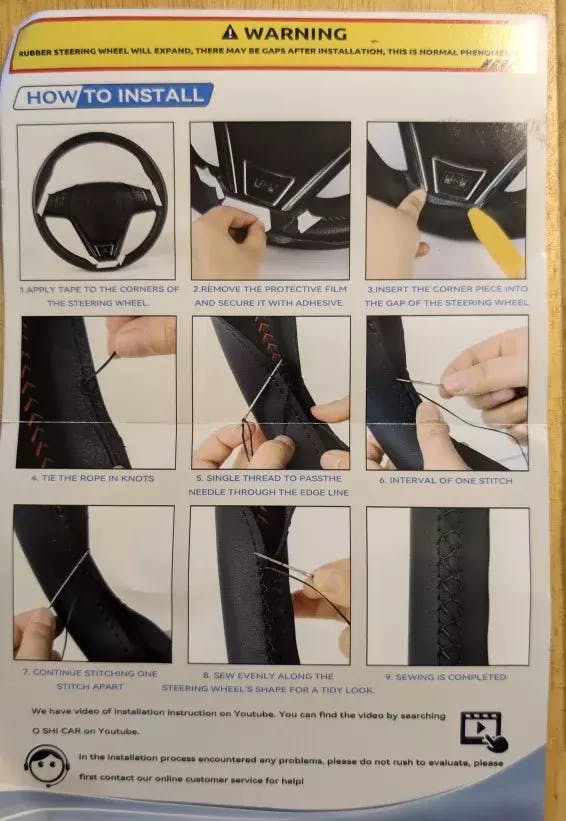This is the perfect steering wheel cover that I had been looking for the past 2 years, but I thought it would be too hard to install properly, or just too difficult to install period. Well it WAS time consuming (took me 4 hours or so) but it was a very straight forward mod for my car and nowhere as hard as I thought the install would be. Well worth the money I paid. Loved all the options that MeWant has available, the shipping was fast, and I really couldn't be happier with my purchase. My cover matches my interior perfectly, and I'll be buying all my covers from MeWant from now on. Here are some photos during my install and the finished mod. Looks fantastic, so much better than I had hoped it would look !!
