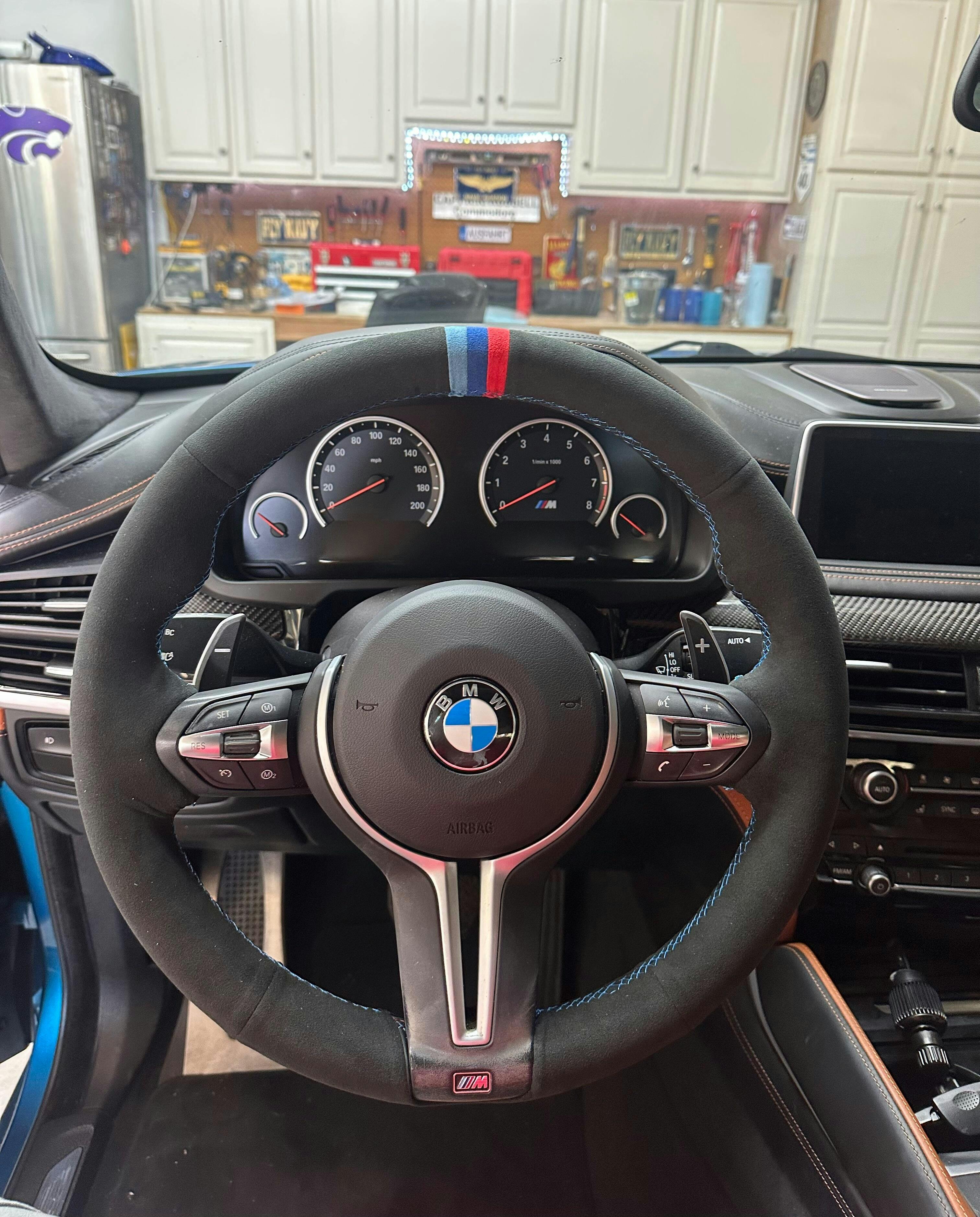 High quality alcantara material, not quite as good as the BMW OEM material but very close. Make sure the cover is correctly aligned on the wheel before starting to sew. Took me about 4 hours but I’m very particular. Ended up looking (and feeling) great, would highly recommend.