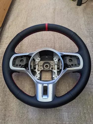 My wheel was starting to split and fall apart and was only getting worse from me constantly picking at it so I decided to pick one of these covers up to give it a try. Figured I'd get the cheapest one possible just to see how it turned out. Surprisingly it turned out pretty good and was pretty easy to do. I pulled my wheel off to make things easier. Overall took me about 2.5 hrs to do. Fitment for the most part was good except in 1 area on the left spoke but not very noticeable. I have plenty of thread left that I could re stitch it so I probably will once the weather gets warmer. Overall I would definitely recommend. I may even buy a nice suede wrap and get rid of the fake leather carbon wrap.