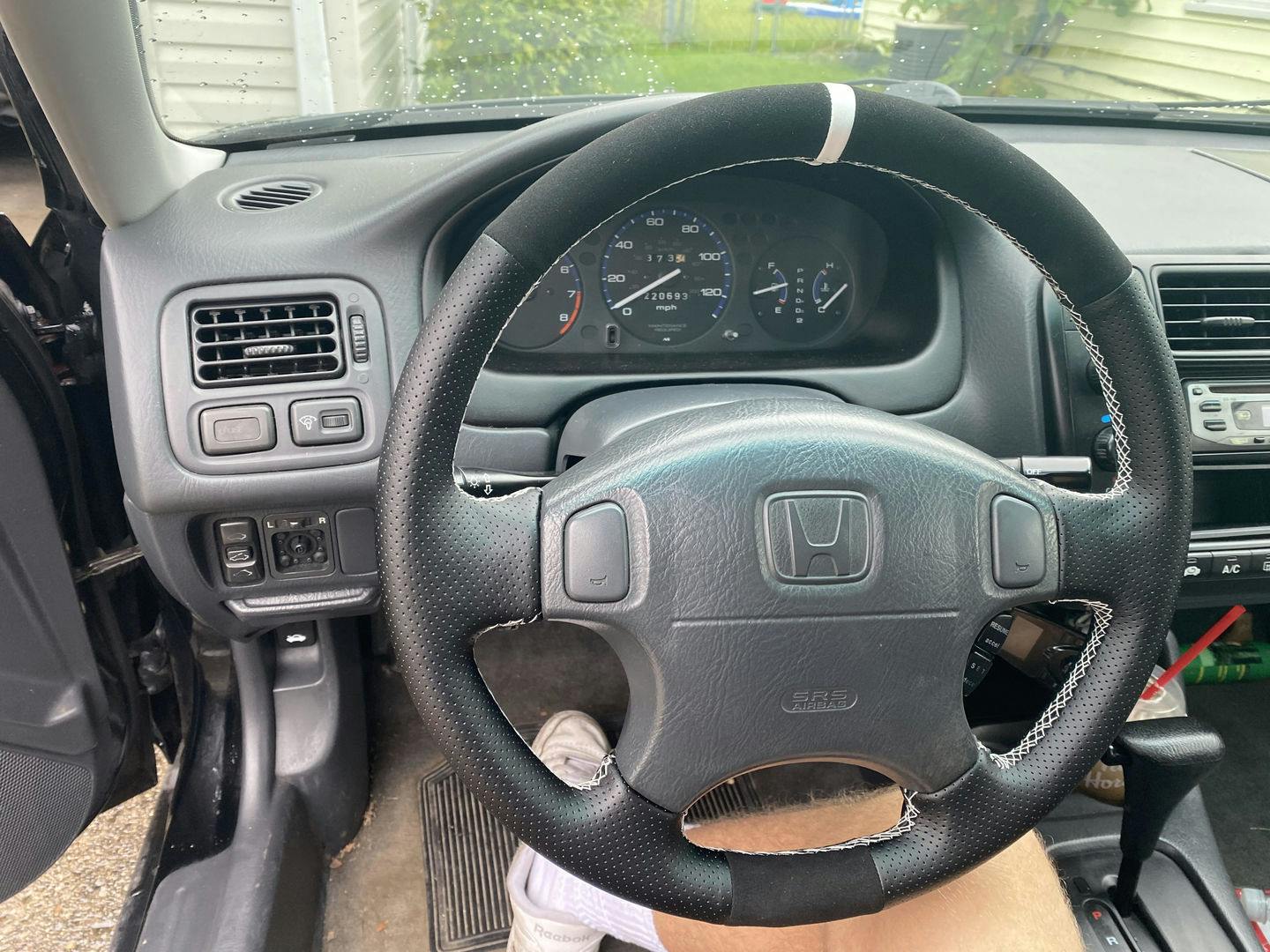 Pretty Happy with the purchase. I think if the thread was higher quality I would give it 5 stars. For the price point this option for fixing your steering wheel is ideal. The leather and suede materials feel nice but is thin enough to preserve the finger grooves on the back of the wheel. My only other criticism would be the visuals on the threading directions; The illustrations are way too over-simplified.