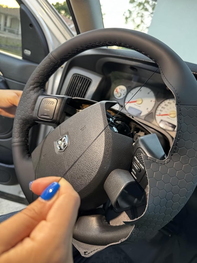 This wrap brought new life to my 06 Ram 2500. The microfiber leather feels smooth but grippy, with just the right amount of thickness to make every turn feel more controlled. The hand-stitched detail with black thread adds a subtle custom flair without being flashy. It took some patience to install (as expected with hand-stitch wraps), but the result is tight, professional, and totally worth it. Fits like it was molded for the wheel, no slipping, no bunching. Now every drive feels like I'm behind the wheel of a high-end truck.
